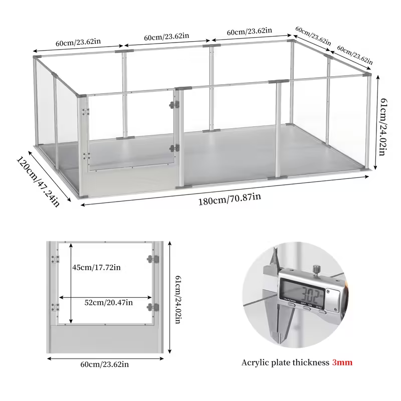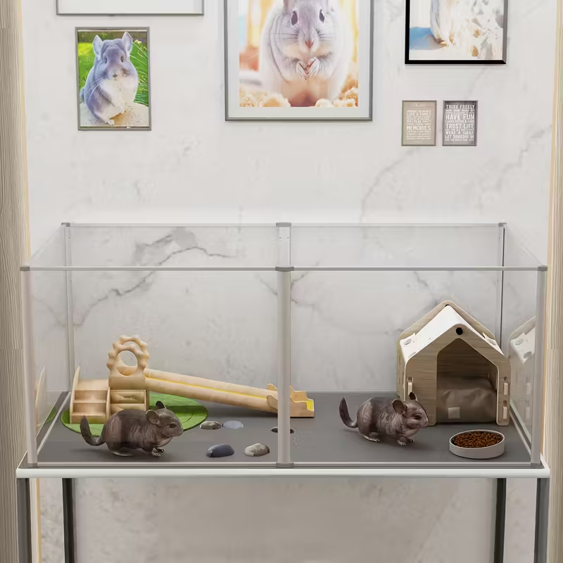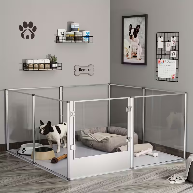 An enclosure creates a clearly defined area that supports daily routines with pets. It offers a place for rest, movement, and calm presence inside the home. The transparent construction keeps the space visually light and open. This approach helps maintain balance between function and appearance. The solution adapts well to different rooms and layouts.