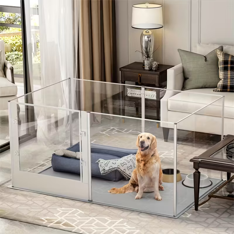 The enclosures are suitable for dogs, cats, and small household pets. The design creates a clear and comfortable area inside the home. Transparent panels help maintain visual connection with the surrounding space. This format fits naturally into everyday living.